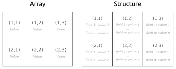 >> S = struct('Hello', 'world!', 'answer', 42); % Defines the fields of the structure for the first element