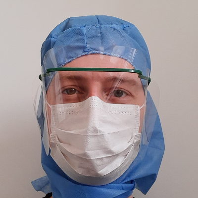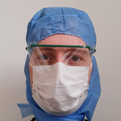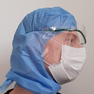 On voit que le front, ainsi que les joues et les tempes sont totalement protégés par la nouvelle visière. Cette version étendue a d'ailleurs été testée au sein de l'IMM et a été validée par le personnel soignant :