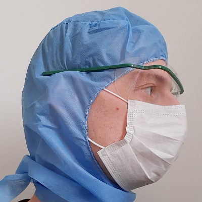 Dans le cadre d'une collaboration directe avec Christophe Travert, interne mobilisé dans l'unité de prise en charge des patients COVID-19 à l'Institut Mutualiste Montsouris (IMM, Paris), nous avons développé, testé et validé une modification de lunettes de protection semblables à celles-ci : (référence d'achat)