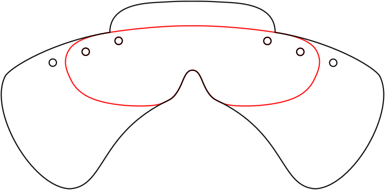 Ces lunettes, habituellement utilisés dans les blocs opértoires ou par les dentistes, sont utilisées dans l'unité COVID-19 de l'IMM en complément d'un masque et d'une cagoule à usage unique. Mais la protection offerte ne couvre pas ni les tempes ni le haut des joues. J'ai donc travaillé sur une version élargie de la visière en gardant la même monture :