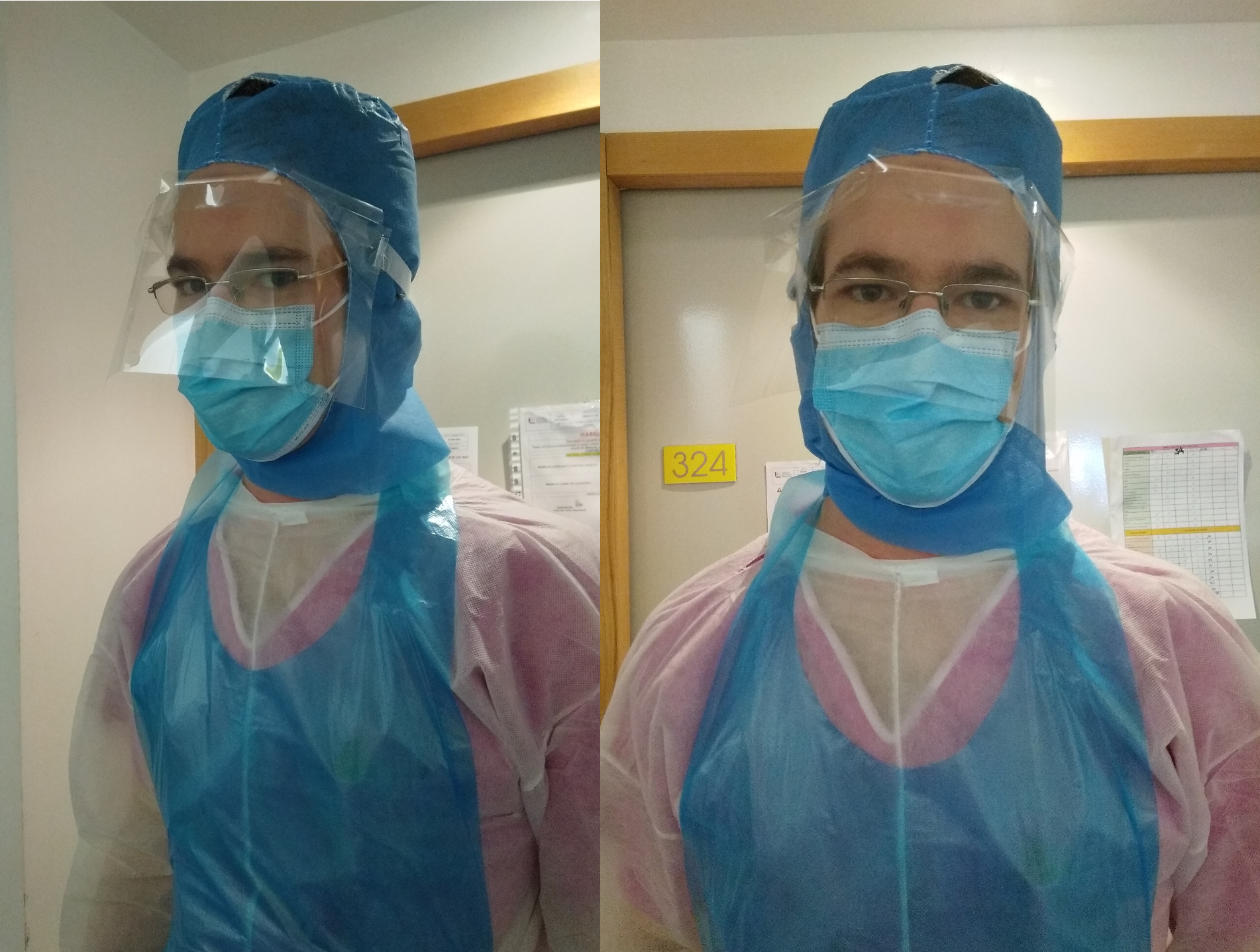 Utilisation de la visière pliable au sein d'une unité covid-19 (Institut Mutualiste Montsouris).